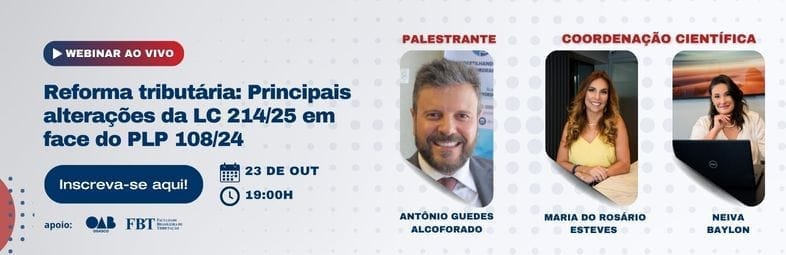 No dia 23/10, às 19h (horário de Brasília), o Instituto Brasileiro de Tributação e Tecnologia (IBTT) realizará um webinar gratuito, com certificado de participação, para analisar em profundidade os principais pontos da nova lei e suas diferenças em relação ao projeto original.